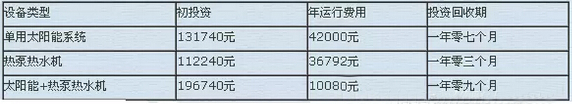 如果單用太陽能熱水系統(tǒng),所需費(fèi)用為:84500+47240=131740(元)