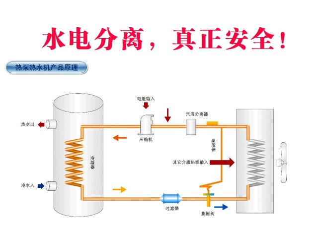 那么,區(qū)別于燃?xì)庀丛?,空氣能熱水器真正做到了水電分離,安全性能更好,帶給消費(fèi)者更加舒適的使用體驗(yàn)??諝饽軣崴鞯陌l(fā)展至今已經(jīng)經(jīng)歷了數(shù)十年的歷史,只不過真正以獨(dú)立的熱水器形式進(jìn)入到大家的生活中則是近十多年的事情。早期的空調(diào)配置,在制冷系統(tǒng)中安裝上電磁四通閥門(又稱作換向閥),通過四通閥門切換方向,改變制冷劑的流動方向,空調(diào)就可以制熱??諝饽軣崴饕彩且源卧恚瑝嚎s機(jī)排除的高溫高壓蒸汽狀的制冷劑流向保溫水箱里的冷凝器,將熱量傳送給水箱中的自來水并且進(jìn)行加熱。熱泵熱水器通過吸收室外空氣中的熱量,電帶動壓縮機(jī)進(jìn)行換熱工作,比單獨(dú)的使用電加熱熱水器更加節(jié)能省電,節(jié)能可達(dá)到75%以上。